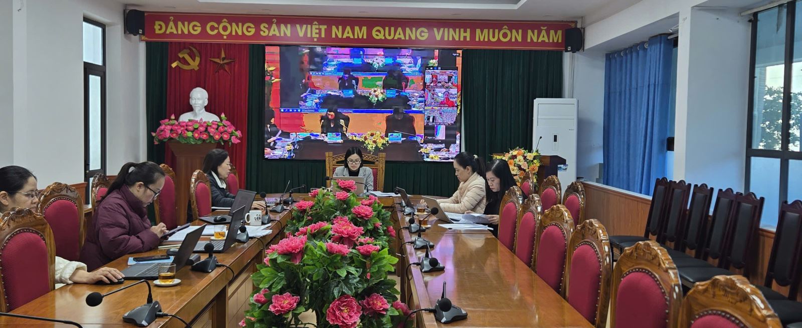 Tại điểm cầu tỉnh Sơn La, đồng chí Cầm Thị Hồng Duyên- Phó Chủ tịch Ủy ban MTTQ Việt Nam tỉnh, Chủ tịch Hội LHPN tỉnh - chủ trì tham dự Hội nghị cùng với các lãnh đạo ban, chuyên viên Hội LHPN tỉnh Sơn La.